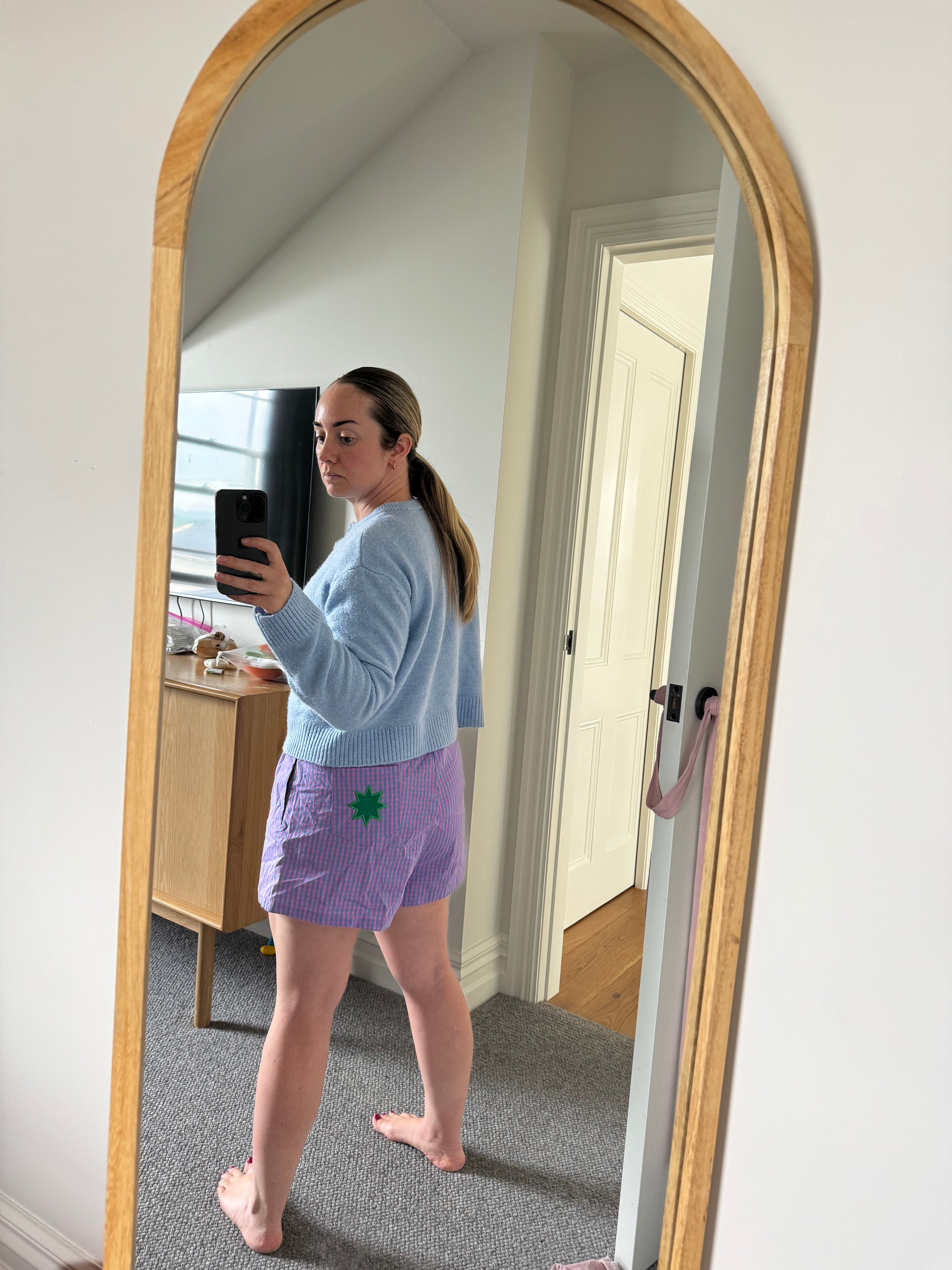 Perfect for matching your mini, these gingham whetū (star) shorts keep you looking fresh and fabulous. Handy front pockets and a whetū back pocket mean plenty of room for your essentials and your tamaiti's treasured finds. Crafted from 100% cotton, they're soft and comfy—giving you the freedom to move, parent, and express your style with ease.